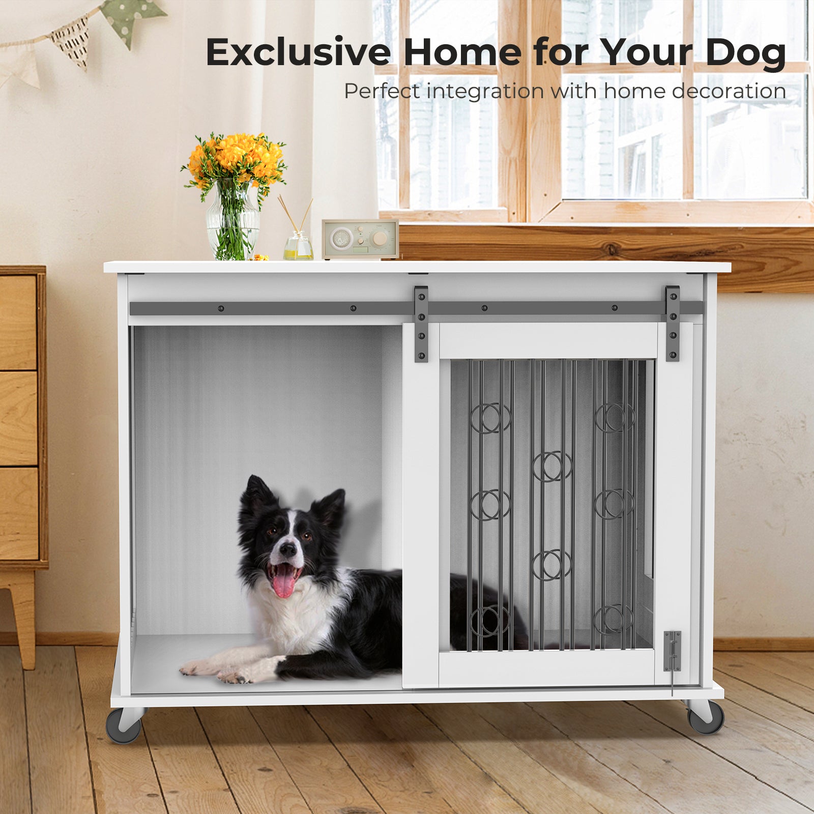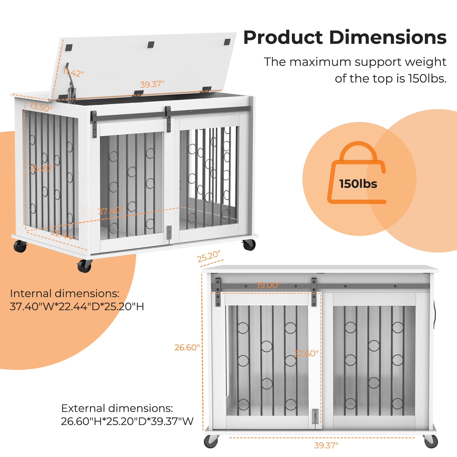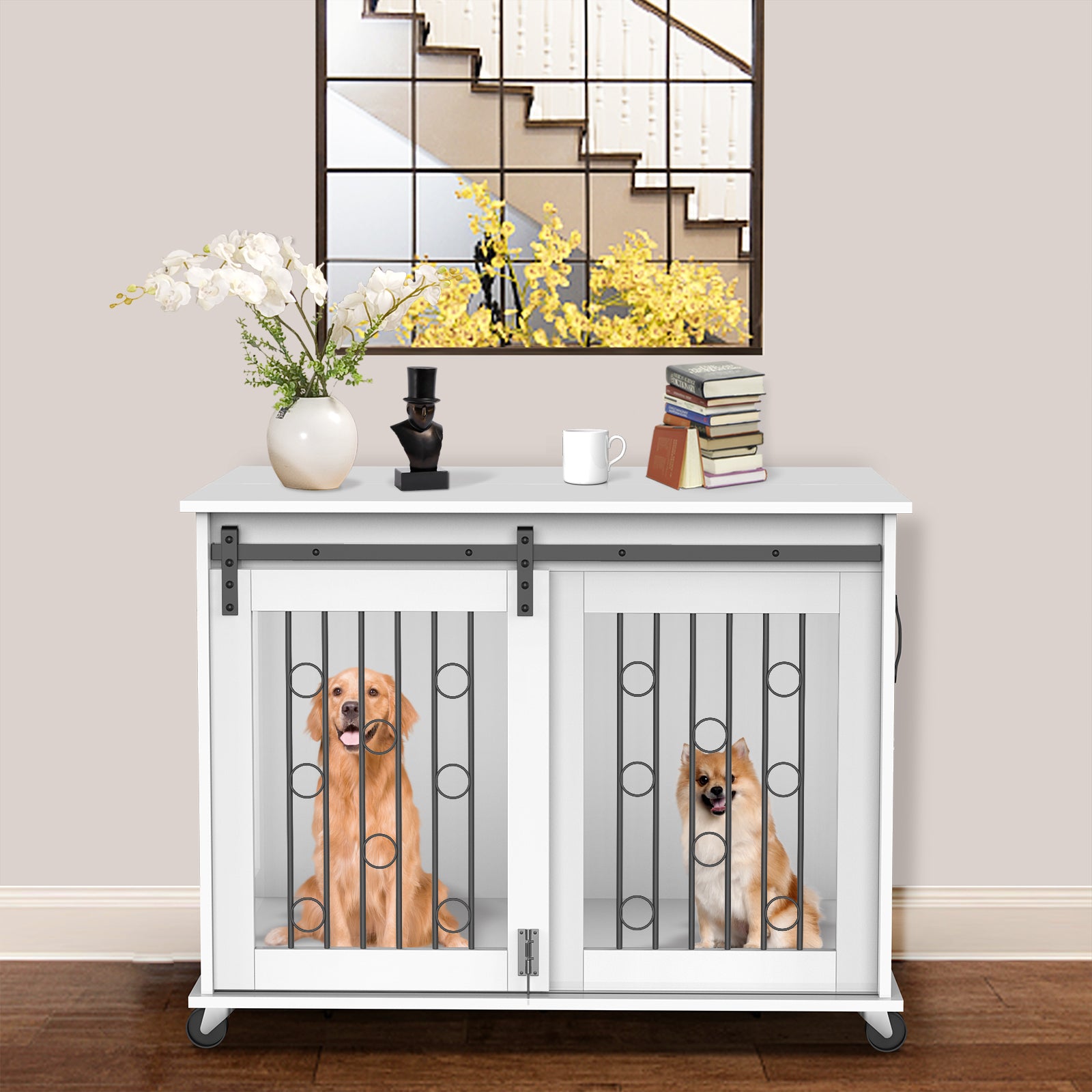 - 【Two Room Design】Our large dog crate end table is designed with a removable divider which can keep two puppies, and can also put dog food on the side. You can adjust the divider as your dog grows. The divider can also be removed to accommodate a medium dog