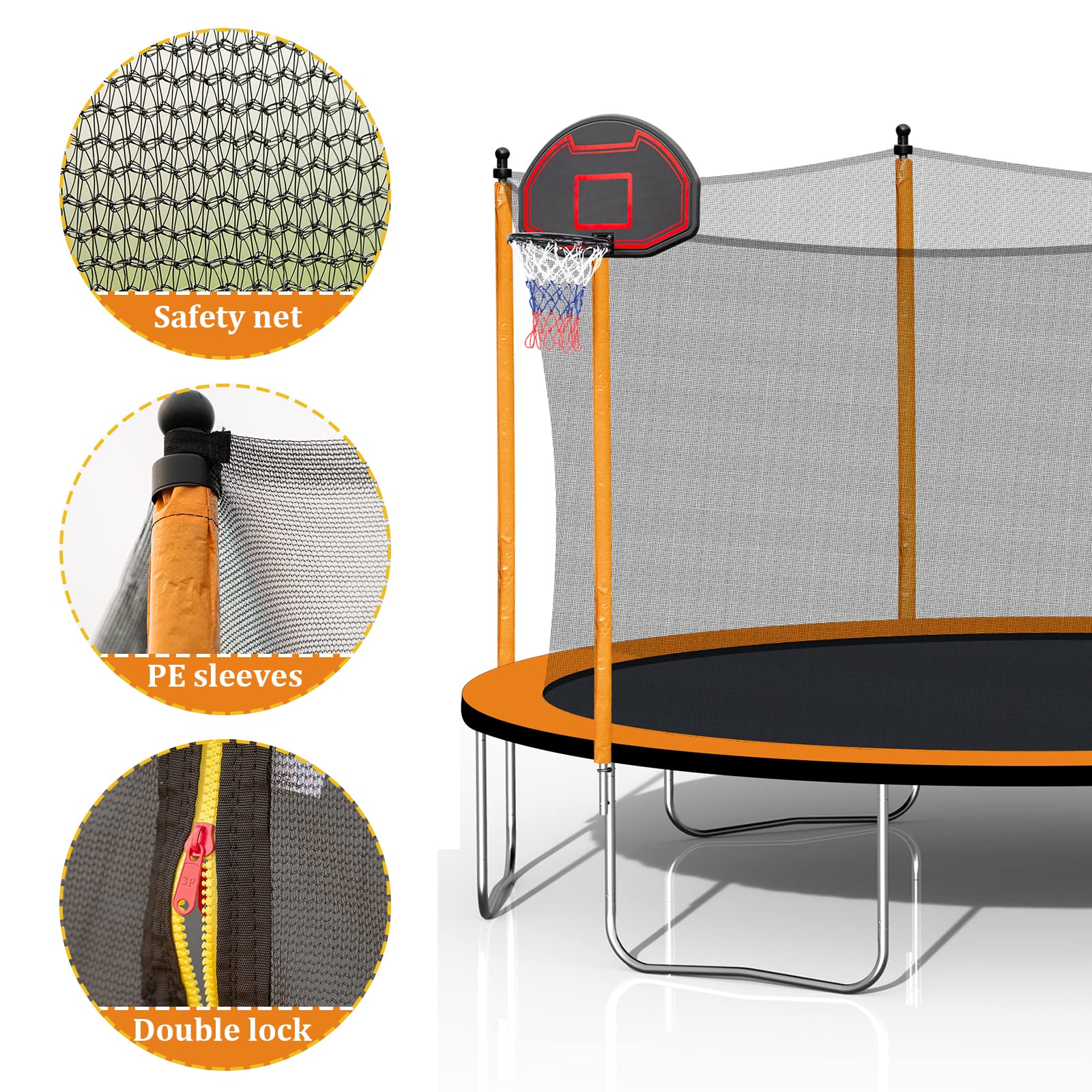 - 【Reversible Basketball Hoop】This large trampoline with basketball hoop comes with reversible basketball hoop and ladder, enable you and your kids to play basketball inside the trampoline and outside the trampoline