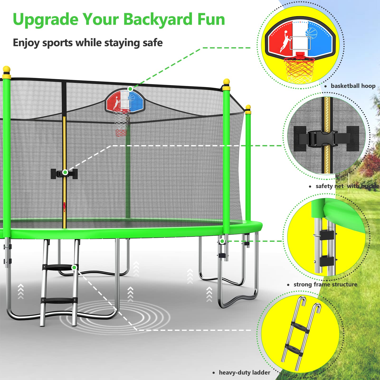 16FT Outdoor Backyard Jumping Trampoline with Basketball Hoop and Ladder