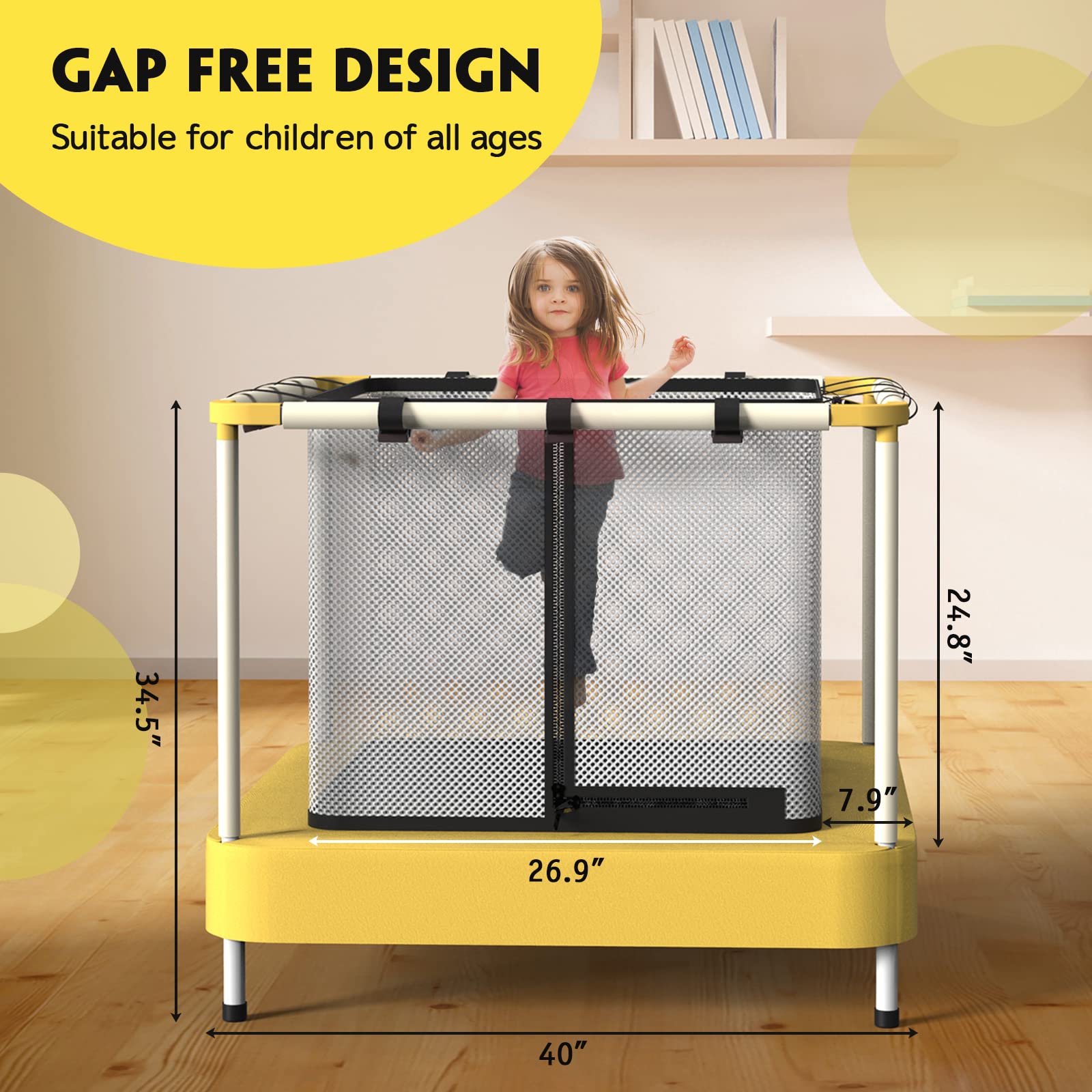 - 【Easy to Assemble】The small indoor trampoline from box to fully assembled is in less than 10 minutes. 40'' modest size make it suitable for indoor and outdoor use, game changer for kids to stay away from mobile games