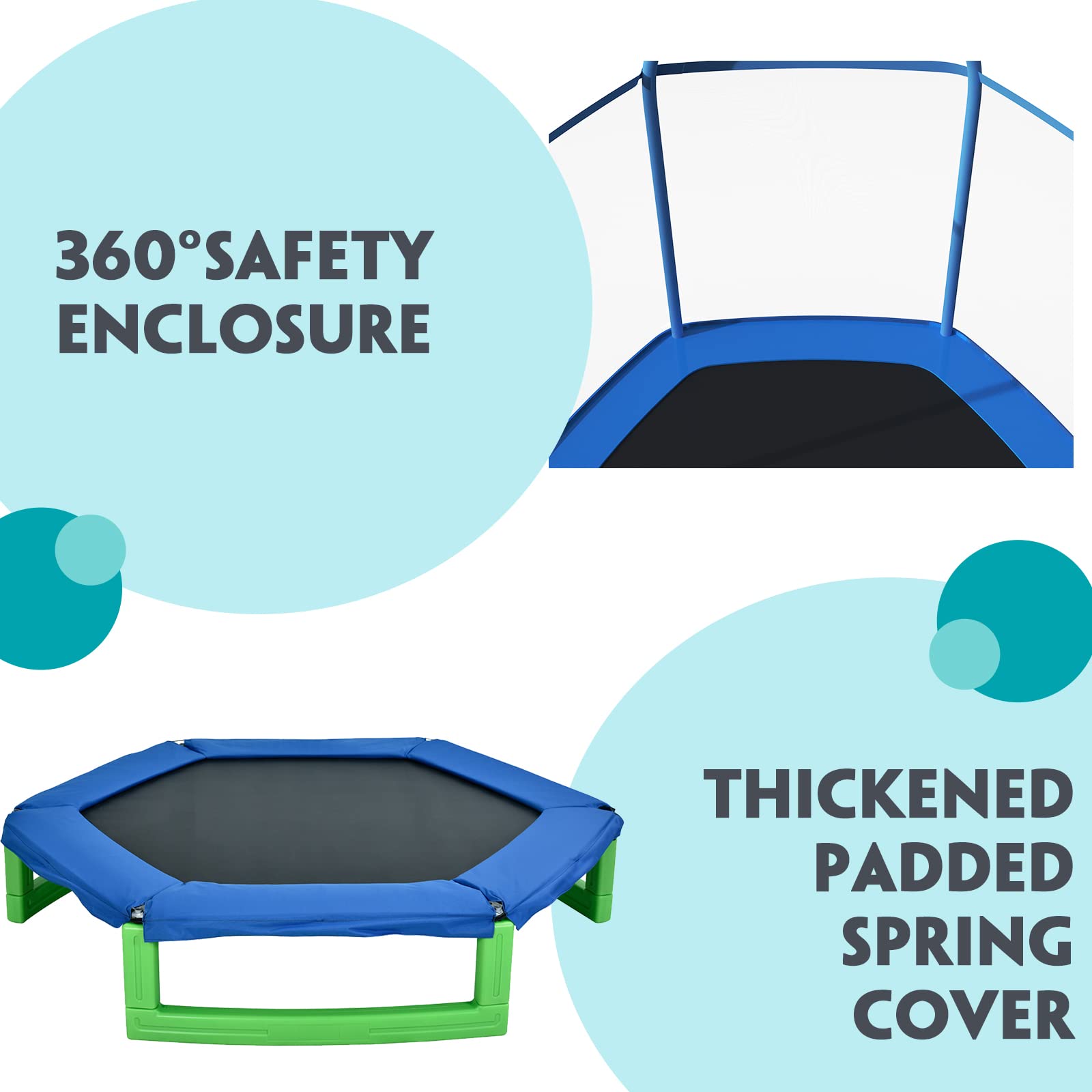 Lyromix 7FT Kids Trampoline for Toddlers, Indoor Mini Trampoline for Kids, Small Trampoline with Enclosure, Adult Fitness Trampoline for Indoor and Outdoor Use, Blue