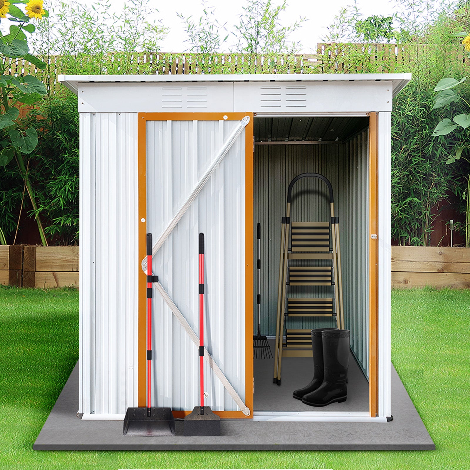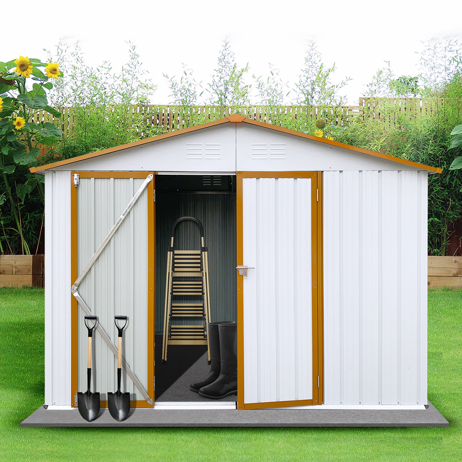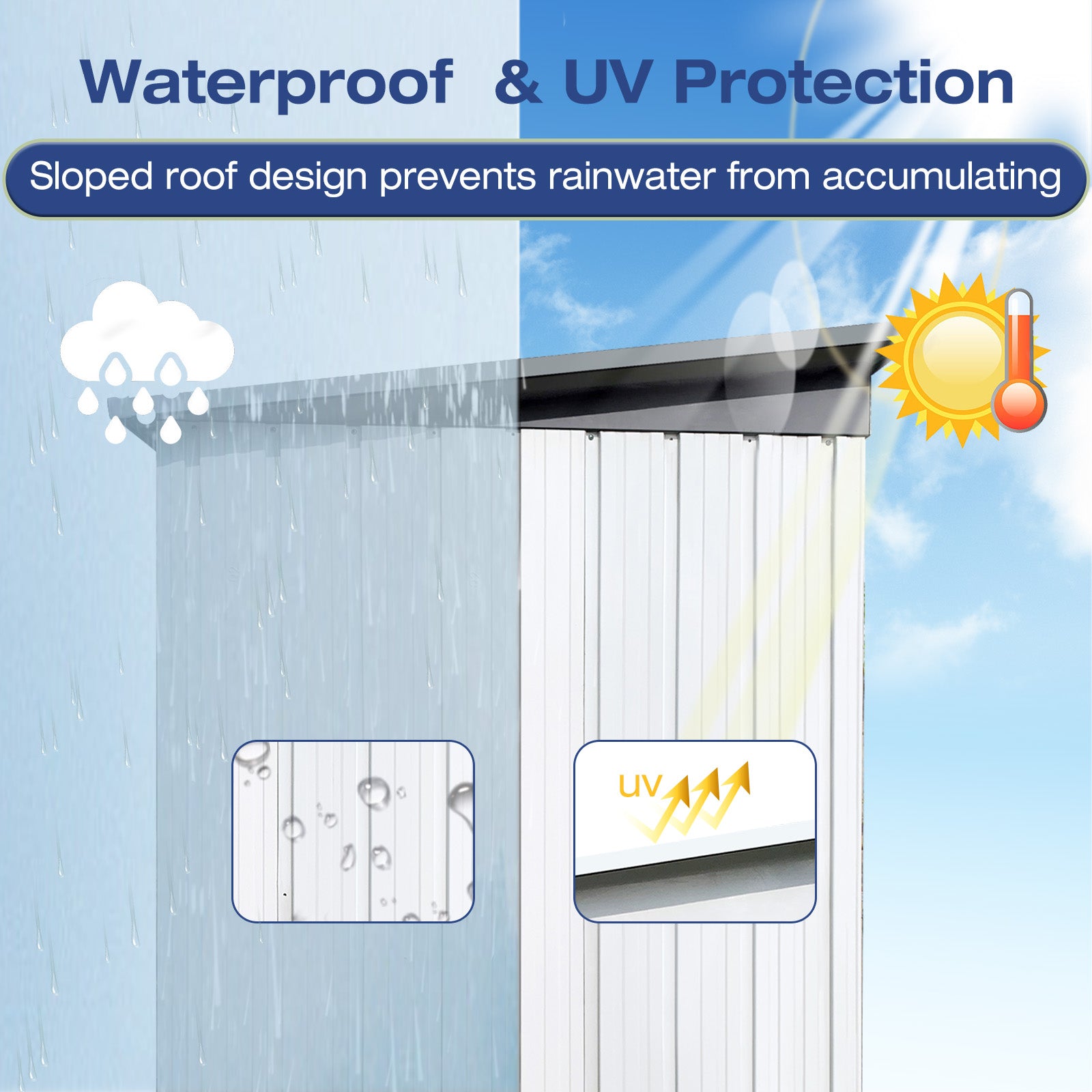 Lyromix Metal Outdoor Storage Shed with Door & Lock, Waterproof Garden Storage Tool Shed with Base Frame for Backyard Patio